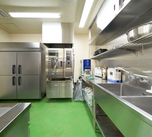 常に床に流れている状態の厨房や食品工場、給食センターなど床にも施工が可能。ポリウレア樹脂が、熱や焦げ、薬品、洗剤、、傷、摩耗、湿気などあらゆるダメージから床を守ります。一晩で改修、翌朝には歩行が可能となり、営業に支障をきたすことなく施工できます。